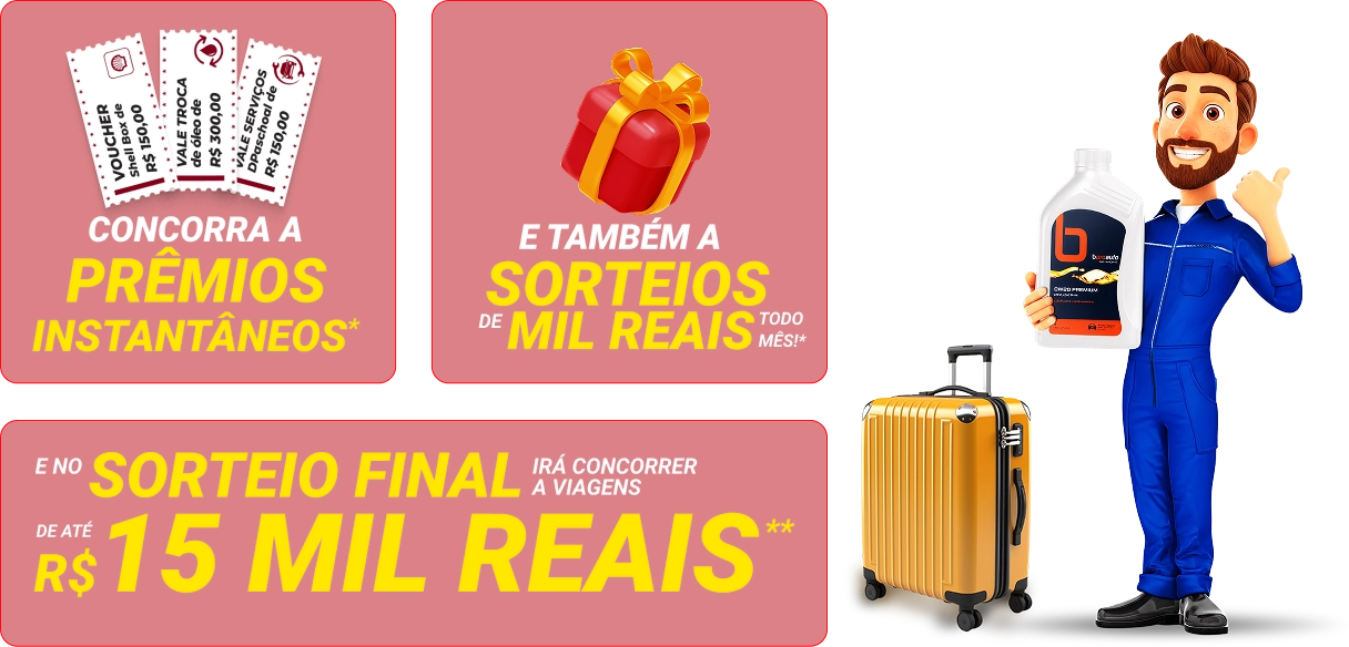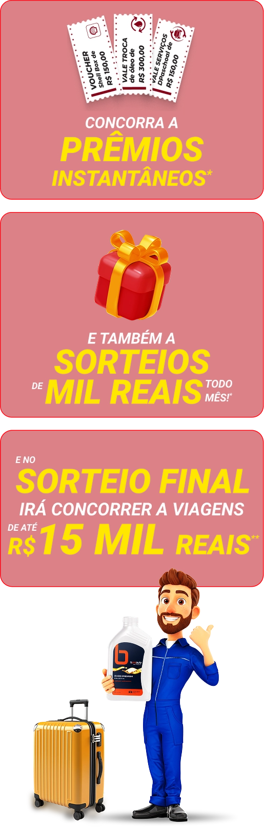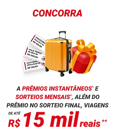 Premiação instantânea. Sorteio mensal e sorteio final.